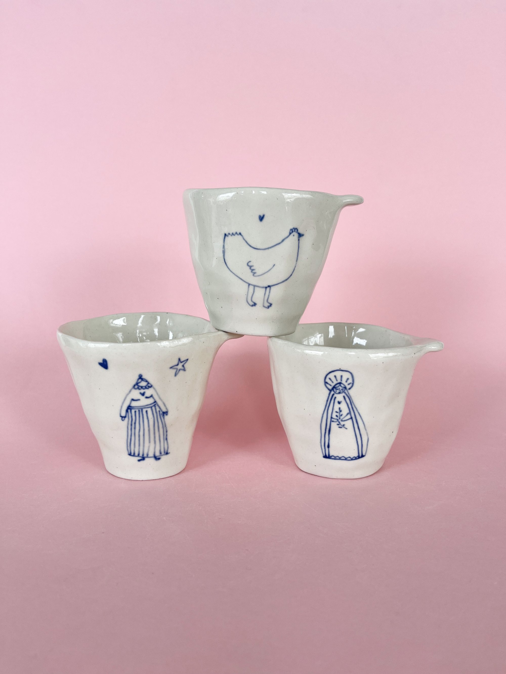 une tasse presque sans anses pour que ça soit plus pratique à ranger dans les placards , mais avec sa petite oreille pour reposer sur son doigt :) !